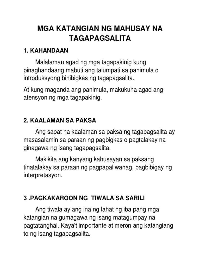 Mga Katangian Ng Mahusay Na Tagapagsalita Pdf