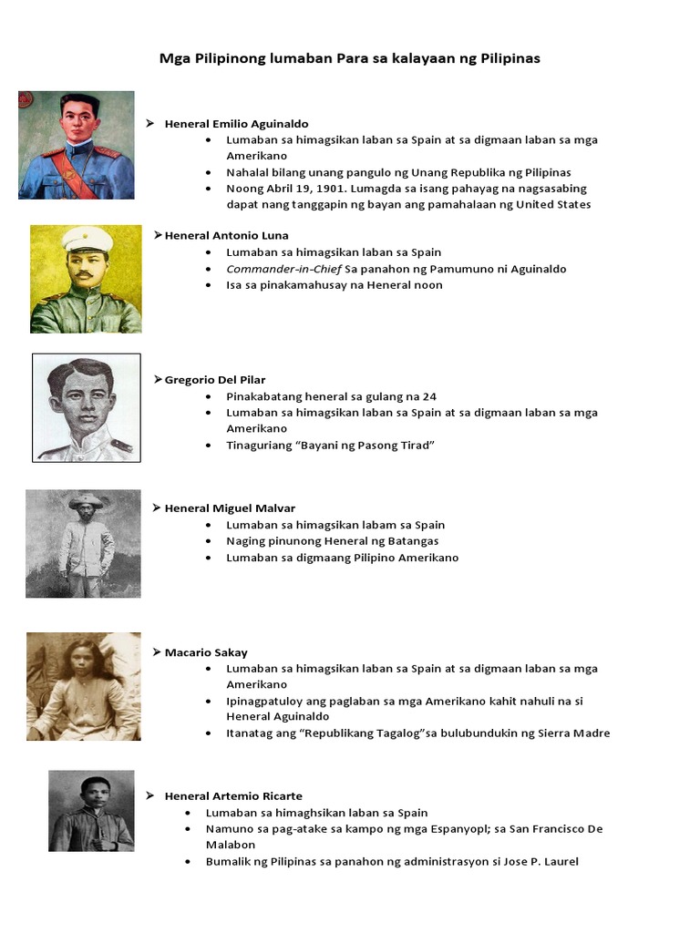 Mga Pilipinong Lumaban Para Sa Kalayaan Ng Pilipinas Pdf