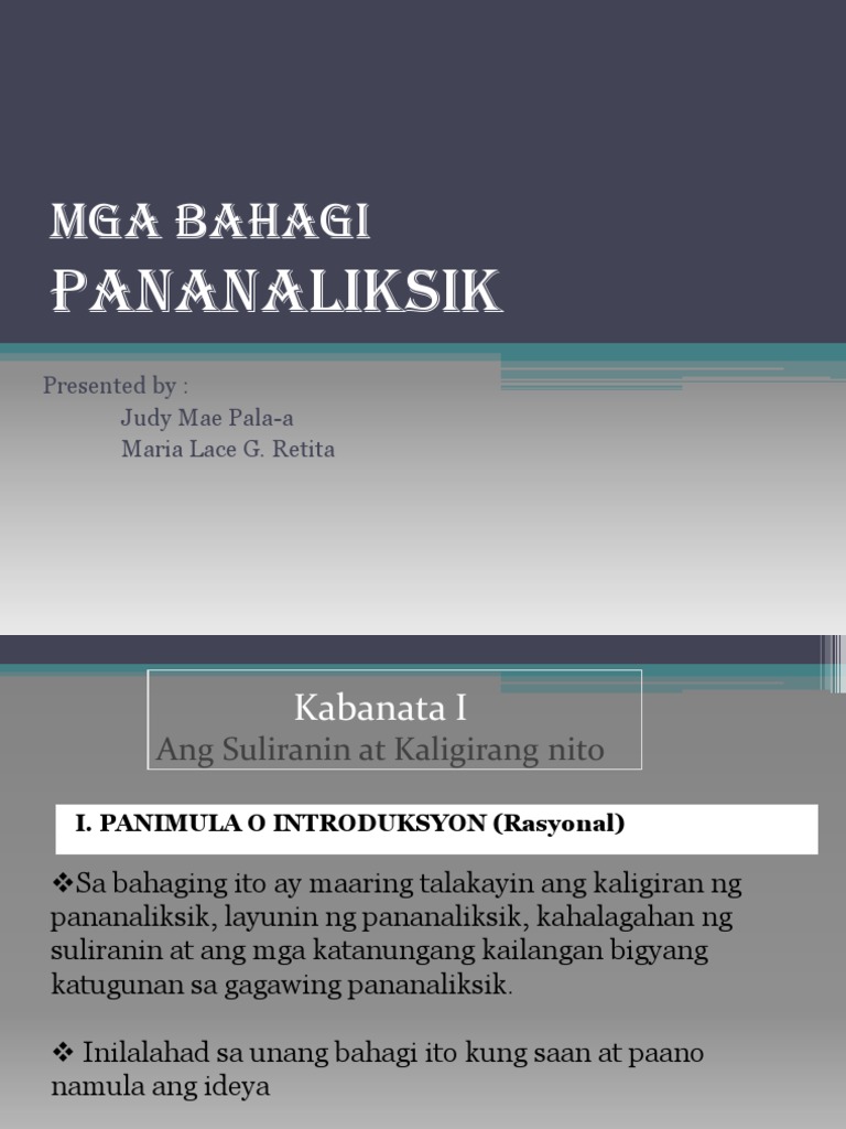 Ng suliranin ay ang pinakasentro ng pananaliksik sapagkat dito mangagaling ang lahat ng mga katanungan na dapat masagot sa kabanata apat ng pananaliksik. Introduksyon Rasyunal Panimula Kaligiran ng Pag-aaral B. Sa paksang ito tatalakayin natin ang bawat isa.