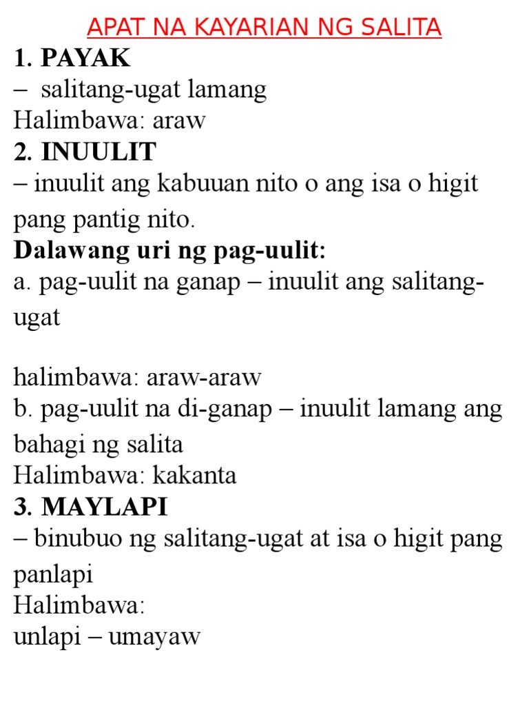 Apat Na Kayarian Ng Salita Pdf