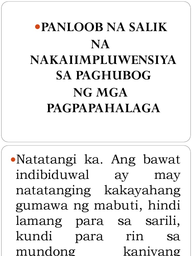 Panloob na salik paghubog ng mga pagpapahalaga Kahulugan ng Konsensiya. The English for panloob na halaman is indoor plant. Mga Panloob na Salik Hilig Mithiin Demand Talento 1 Ano anong mga mahalagang from Arts 4 at Ilocos Norte National High School Laoag City.